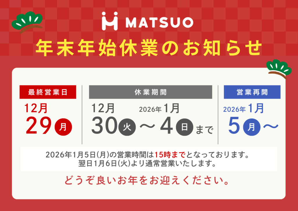 年末年始休業のお知らせ