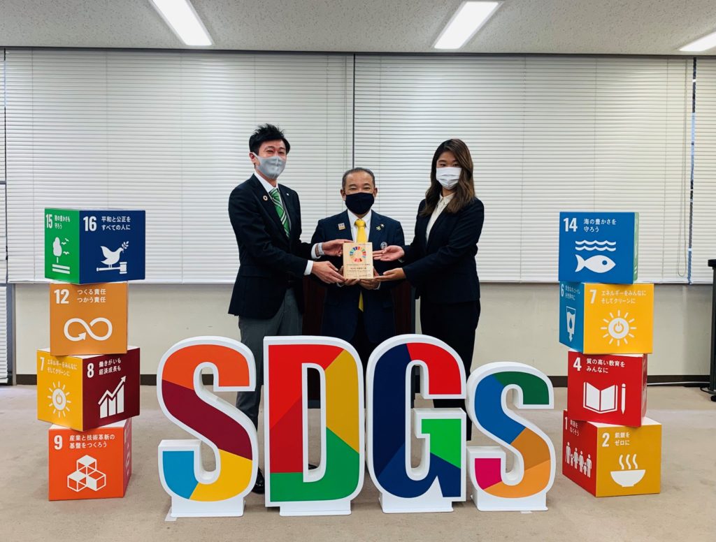 2021年5月11日に相模原市役所にて、さがみはらSDGsパートナー登録証盾交付式が行われ、もとむら賢太郎市長よりパートナー登録を証する木製の盾を受け取りました。この盾は津久井産材で作成されているそうです。